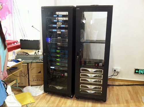 音箱采用HLS F15音箱,HLS F15低音炮,调音台使用北极星ARCTIC 32路调音台,5台北极星ARCTIC PAD系列功放,功放功率强大,使音响音量能满足会堂需求。无线话筒采用舒宝SUPO无线话筒,保证话筒使用不断频,无杂音,因设备较多使用北极星ARCTIC时序管理器保证电源安全及设备保护,使用DBX处理器及前置效果处理器,保证会堂声音效果,用简单的操作放出专业的效果。